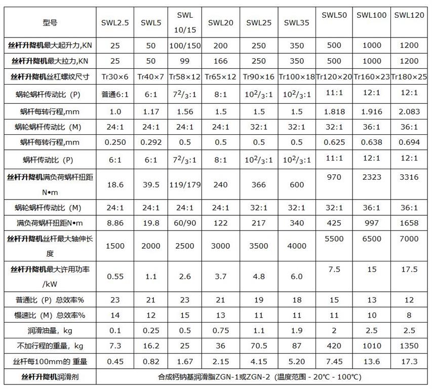 絲桿升降機蕞大起升力,KN絲桿升降機蕞大拉力,KN絲桿升降機絲杠螺紋尺寸